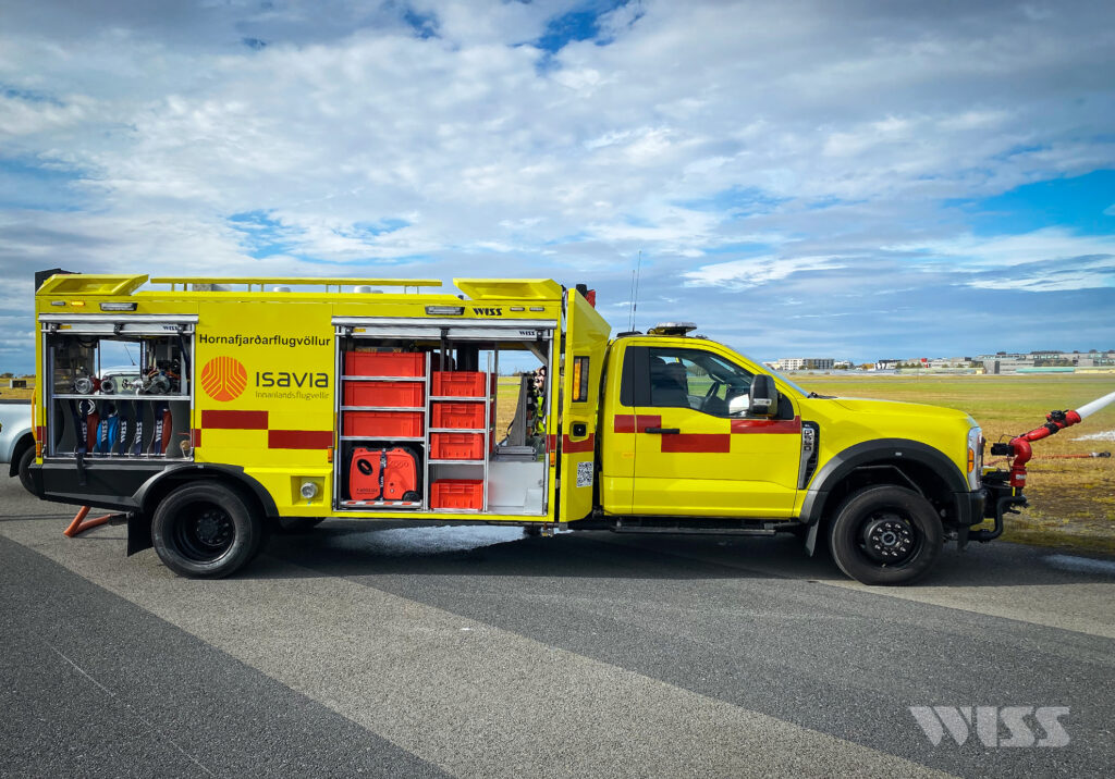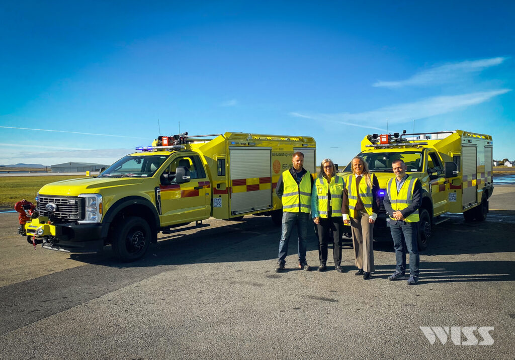 W porcie lotniczym w Reykjavíku – stolicy Islandii – oficjalnie przekazaliśmy cztery średnie lotniskowe samochody ratowniczo-gaśnicze Ford F-550. Pojazdy będą działać w portach lotniczych: Hornafjörðurflugvöllur, Bíldudalsflugvöllur, Gjögurflugvöllur oraz Grímseyjarflugvöllur.