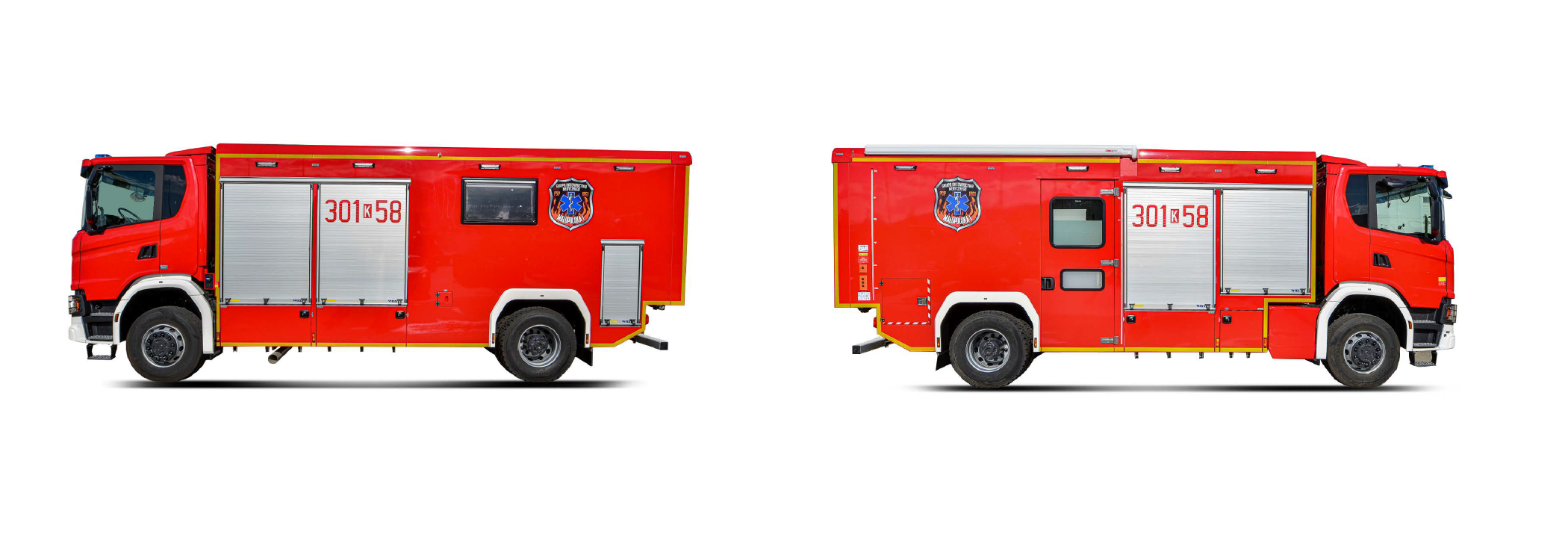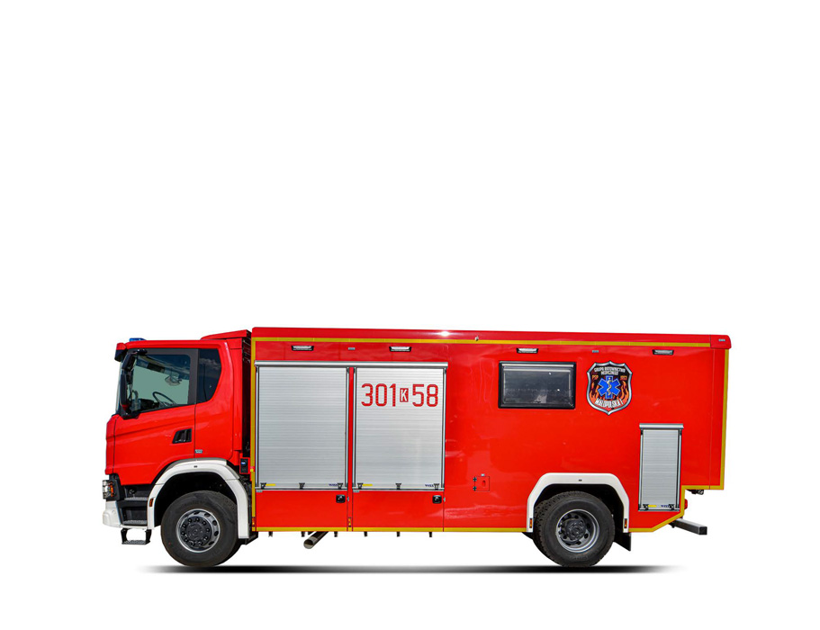 Wykonana z kompozytu poliestrowego, jednomodułowa izolowana termicznie z dwoma przedziałami: medycznym i sprzętowym. Wyposażona w 4 skrytki (2+2) zapewniające optymalną organizację wyposażenia.