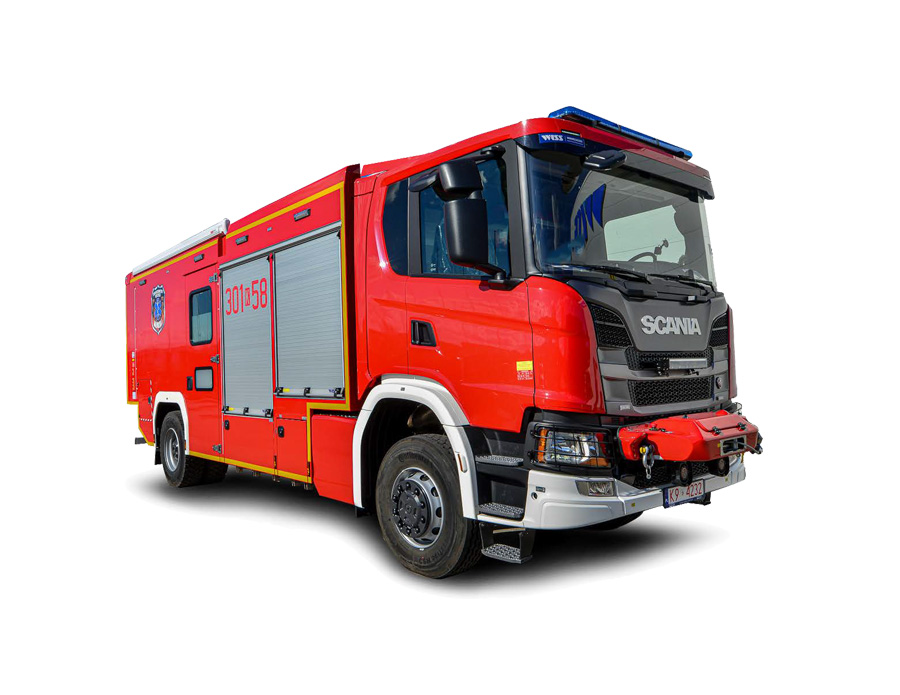 SCANIA G370 z mocą 370 KM (272 kW), automatyczną skrzynią biegów i napędem 4x4 o rozstawie osi 5150 mm. Konstrukcja zapewniająca wysoką mobilność w trudnym terenie.
