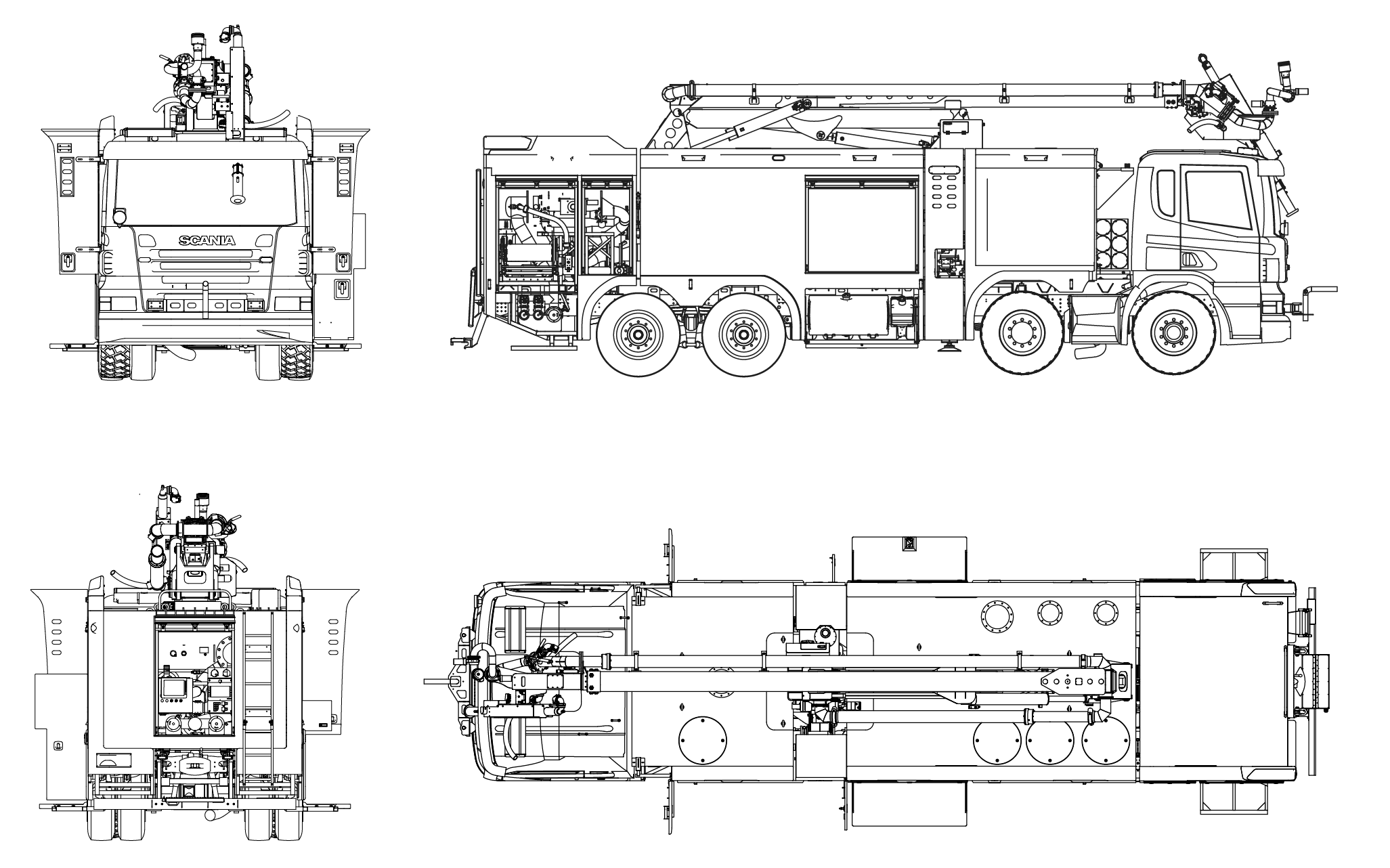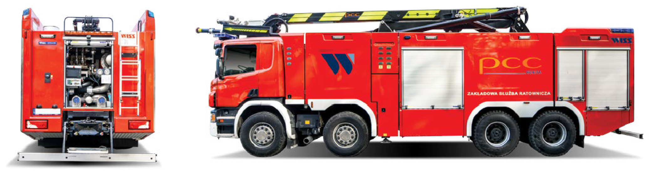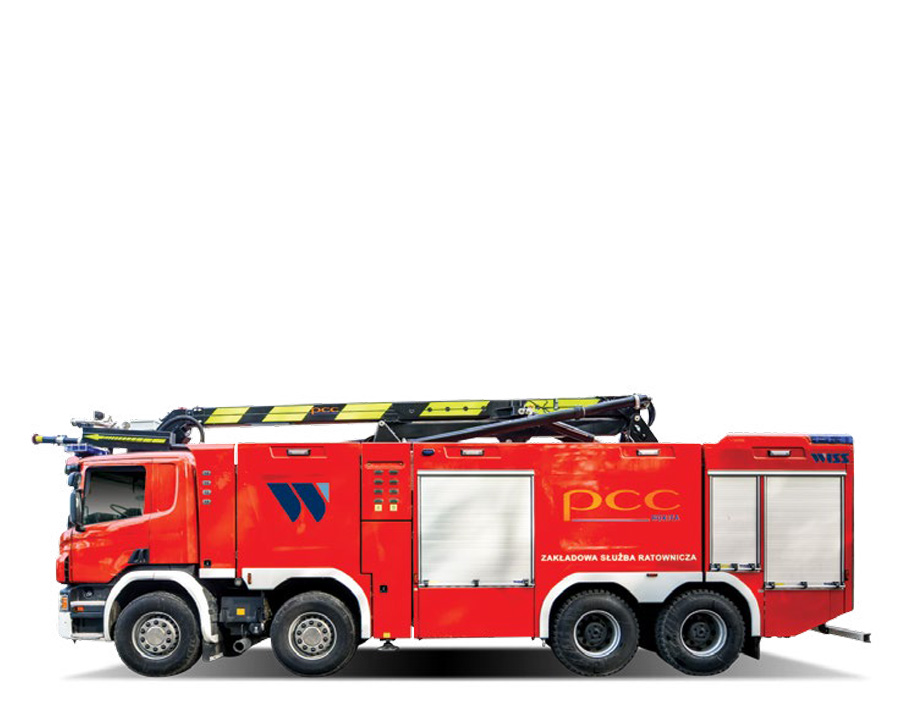 DMC 38 000 kg, o wymiarach 11 300 mm x 2550 mm x 3850 mm. Pojazd wyposażony w ramię gaśnicze o wysięgu 16 m i wydajności 5000 l/min.
