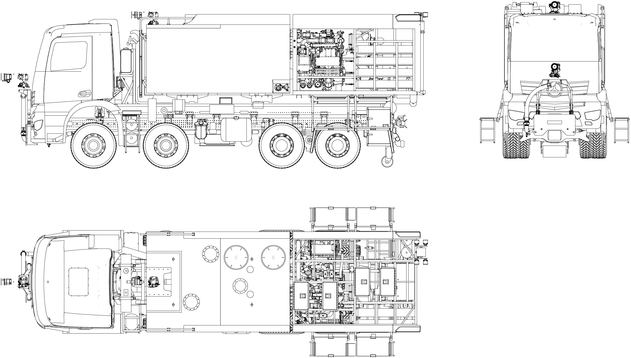 Masa kontenera około 4 100 kg, o wymiarach 8560 mm x 2500 mm x 3698 mm. Wyposażony w silnik John Deer o mocy 310 KM i CO2 – 240 kg.