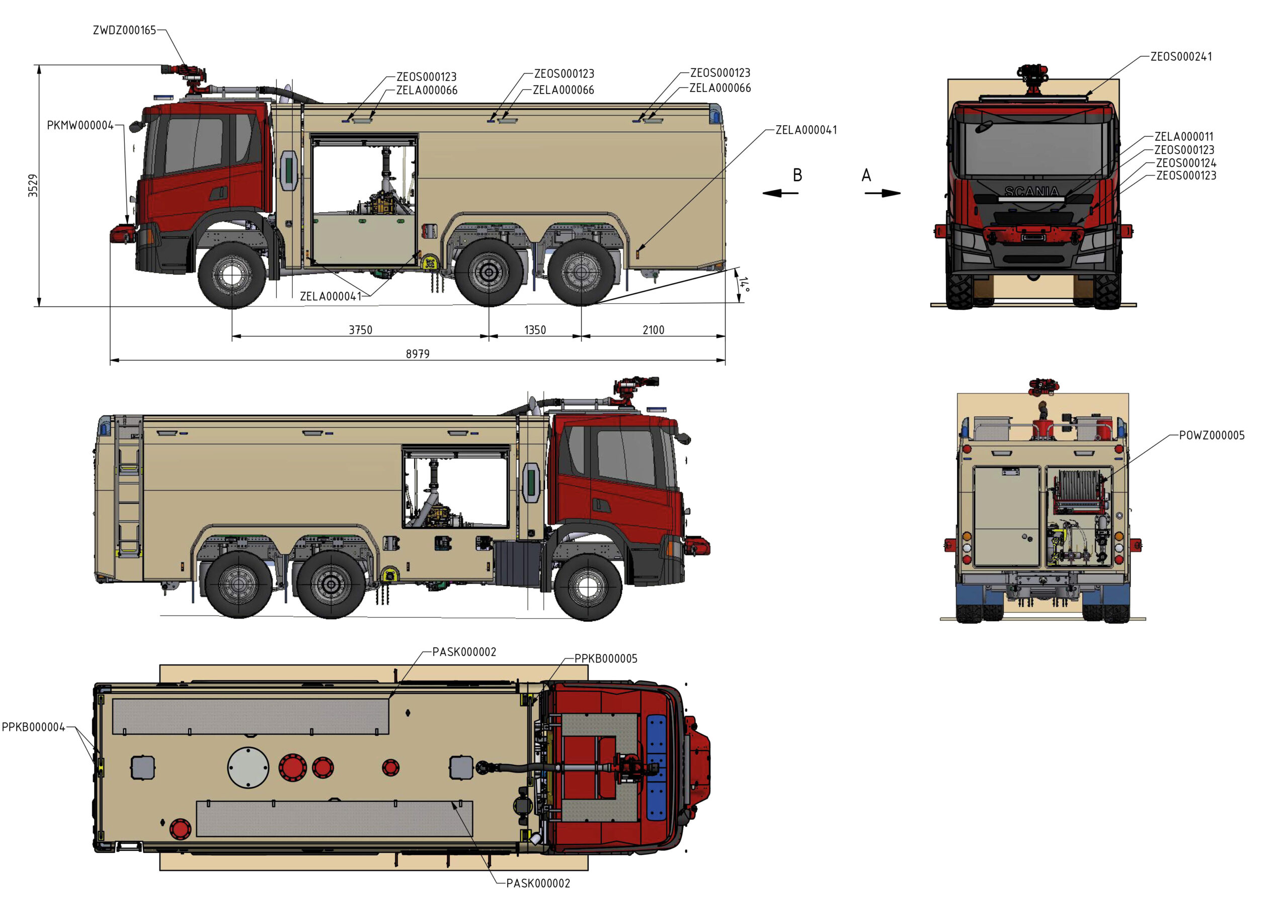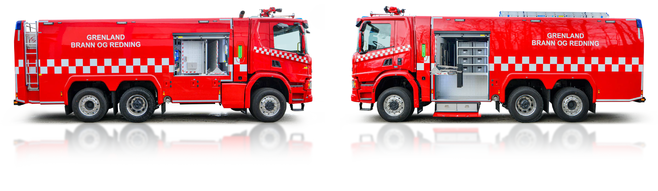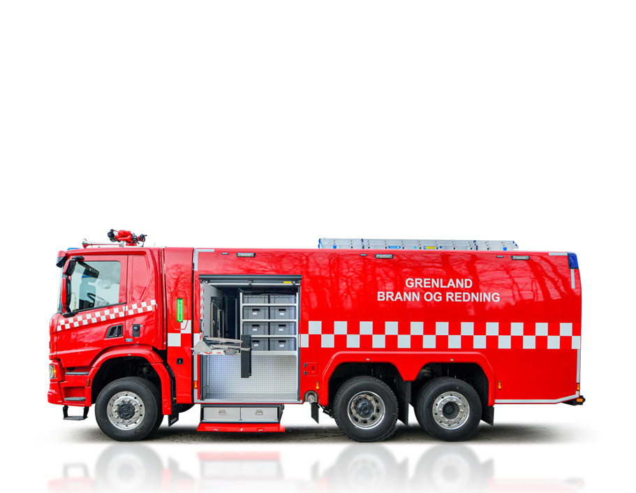 Konstrukcja z kompozytu poliestrowego GRP odpornego na uszkodzenia i korozję. Cztery skrytki (1+1+2) umożliwiają organizację sprzętu gaśniczego.