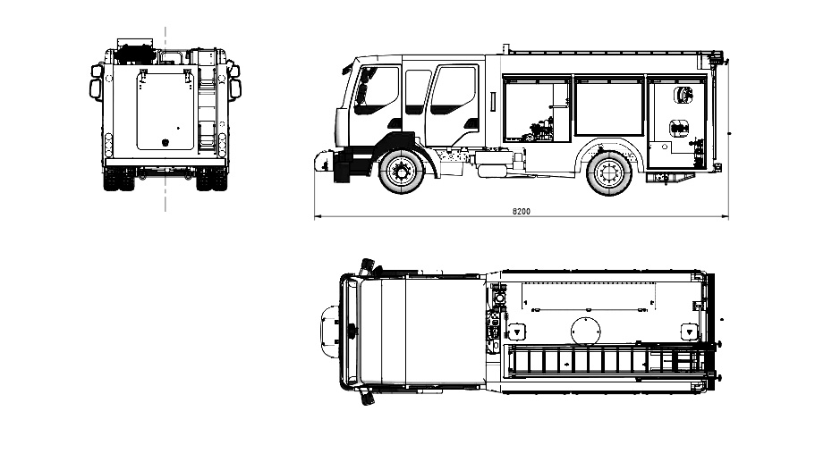 DMC około 16 000 kg, o wymiarach 8150 mm x 2510 mm x 2900 mm. Pojazd wyposażony w elektryczną wyciągarkę 5,4 t z liną syntetyczną 30 m i maszt oświetleniowy pneumatyczny, teleskopowy 4x100 W.