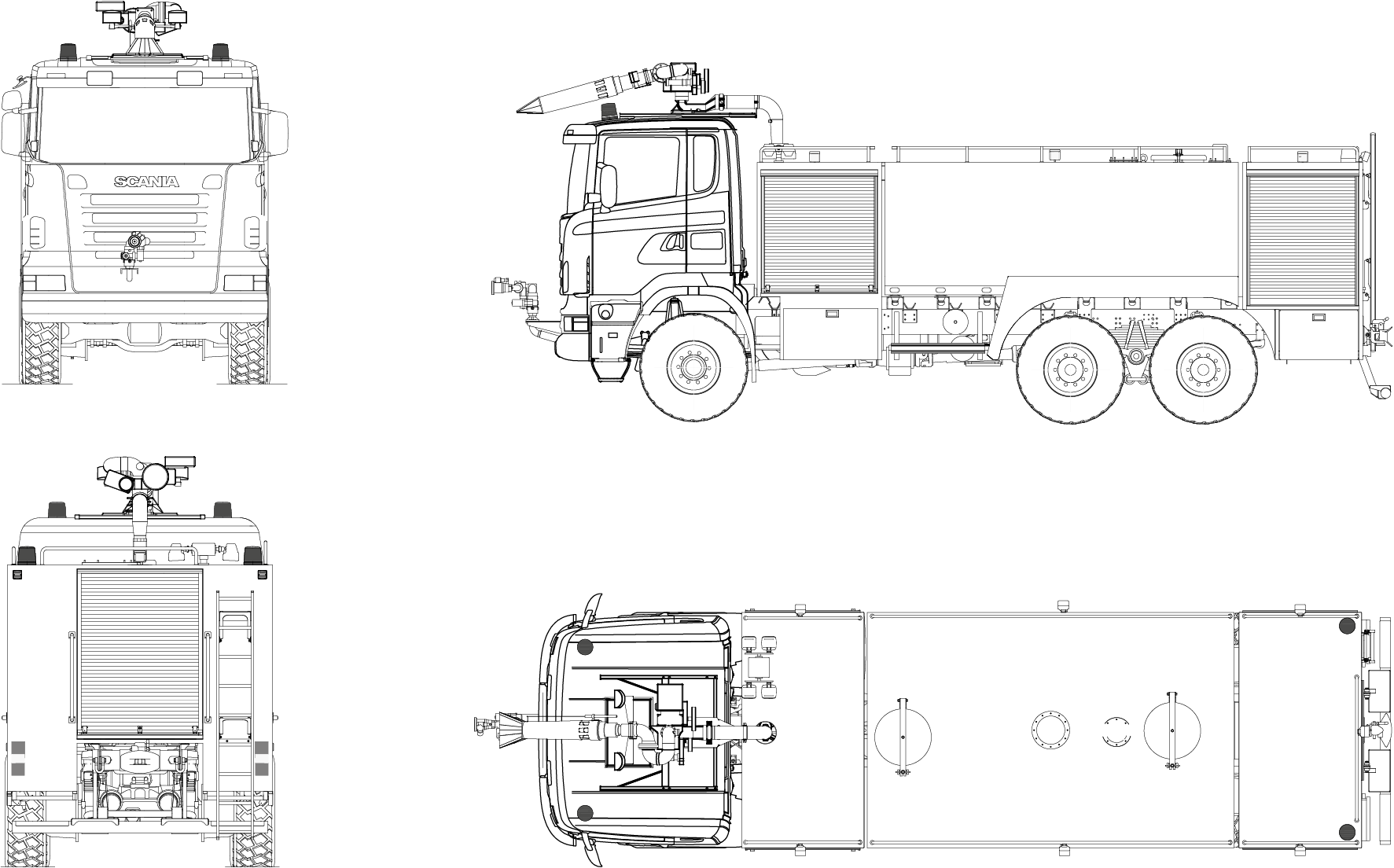 Zbiornik wody o pojemności 10 000 litrów, zbiornik środka pianotwórczego 600 litrów oraz zbiornik proszku 250 kg.