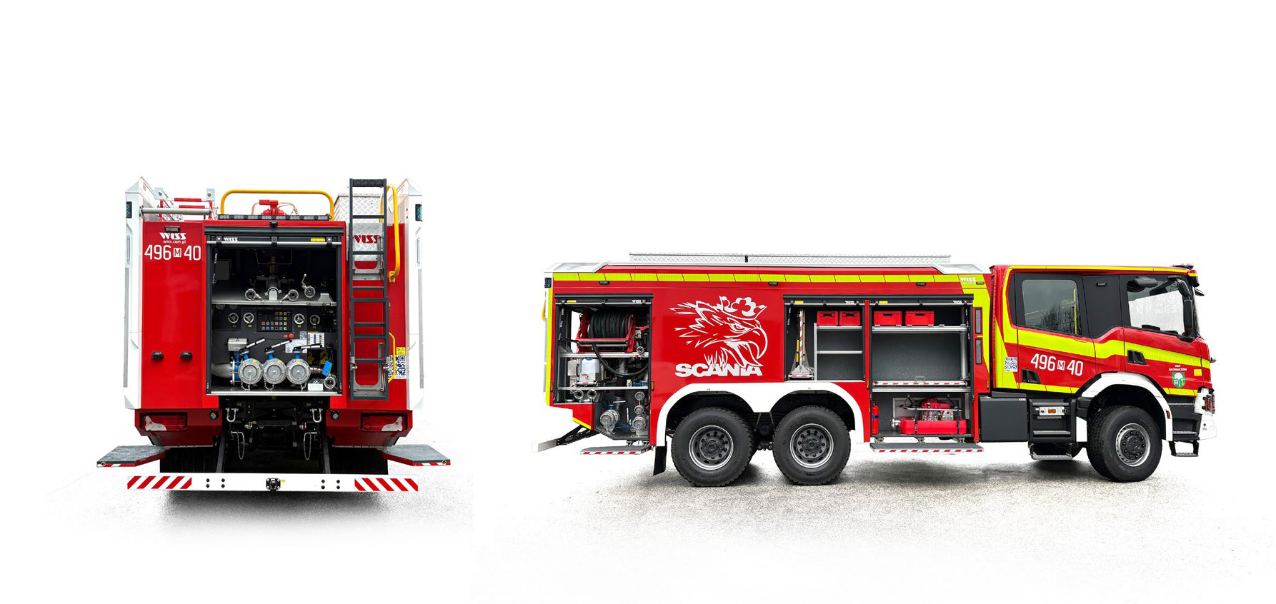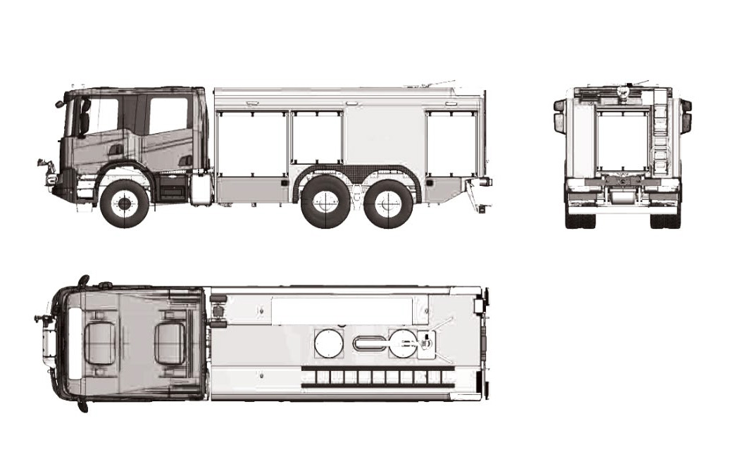 Zbiornik na wodę o pojemności 8300 l wykonany z kompozytu GRP i zintegrowany z zabudową. Dodatkowy zbiornik na środek pianotwórczy o pojemności 860 l.